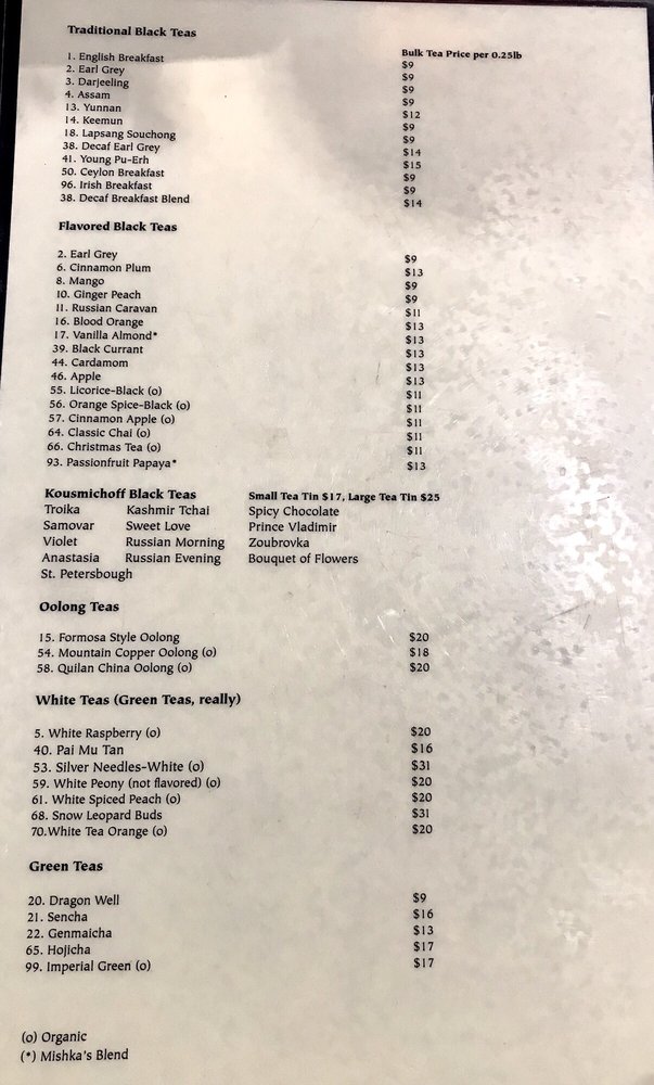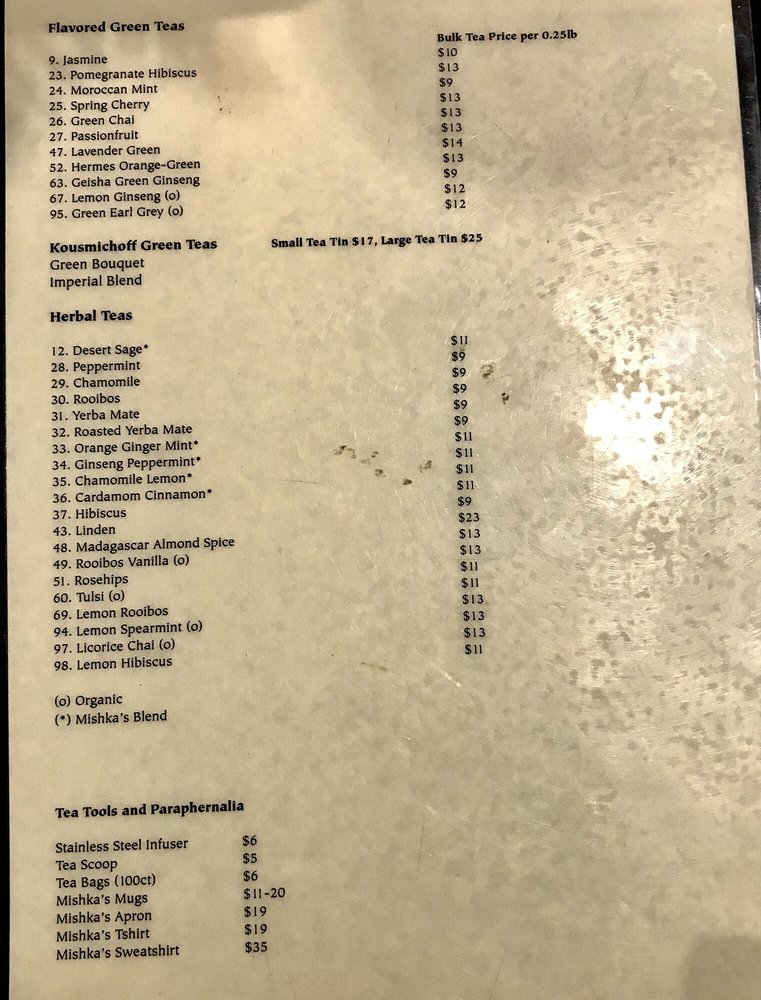 Mishka’s Cafe Menu